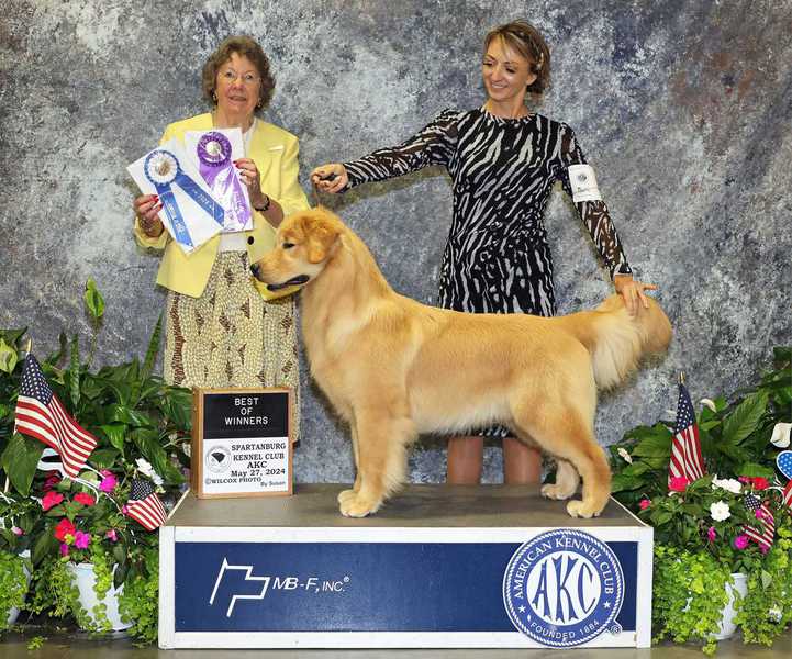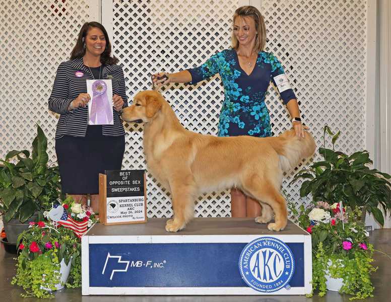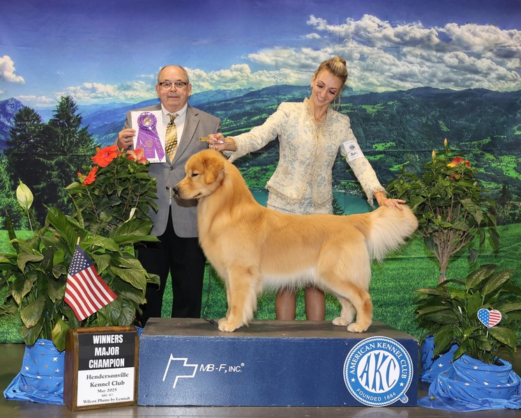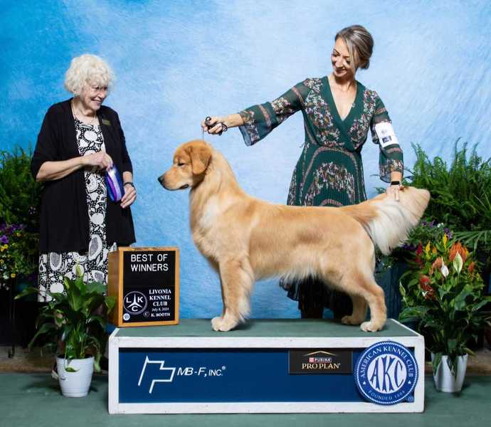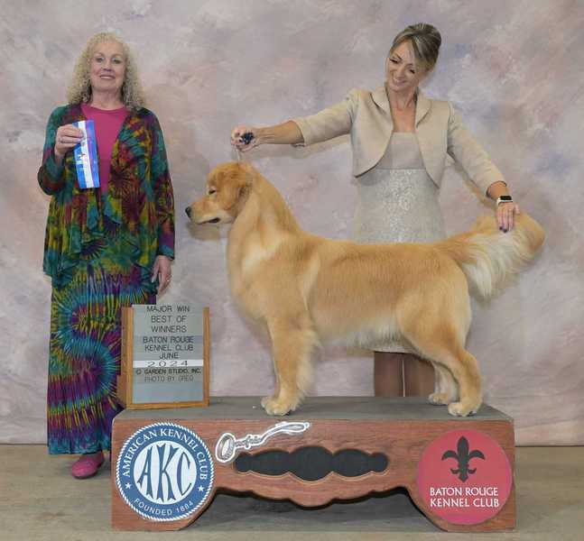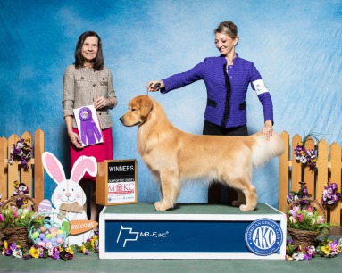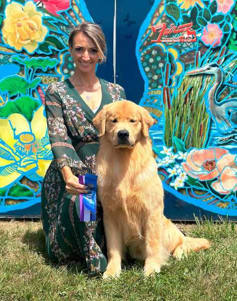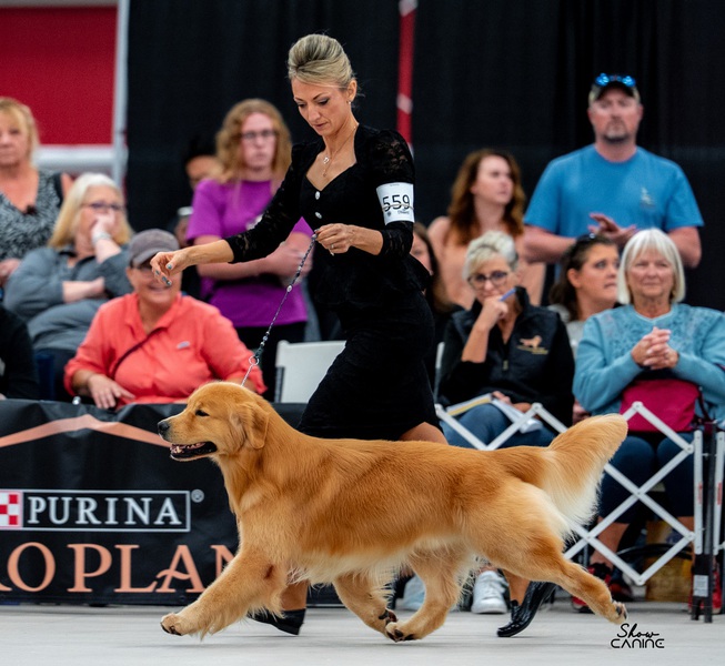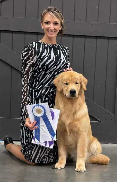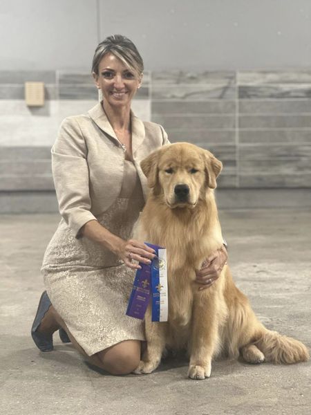 Romeo went out as a special in 2021 with handler Ginny Kincer and quicky finished his Grand Championship with five 5pt majors. He earned multiple Group placements, a Best in Specialty Show at Sandlapper GRC Specialty, and went Best of Opposite Sex at Westminster Kennel Club. Romeo is a Top 20 Golden Retriever and a GRCA Outstanding Sire with many champion, field, and performance titled offspring.