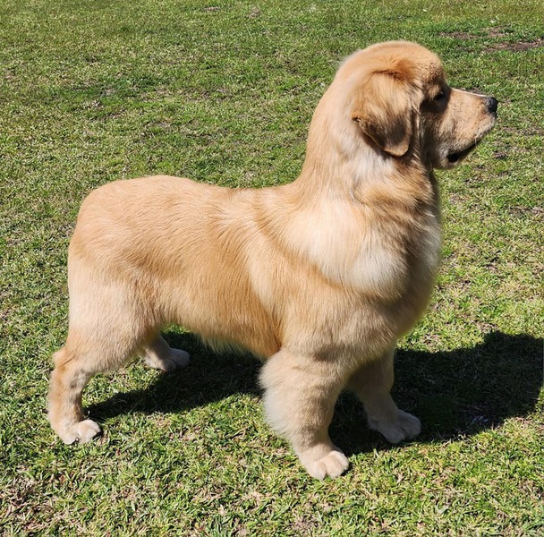 Tosh is a laid back boy who is easy to live with. He has a very soft face, beautiful type, and a floating balanced gait. Tosh finished his American championship with handler Maddie Peterson in style in less than 2 total months of showing with three 5 point majors, including a Specialty Winners Dog at the Sandlapper Golden Retriever Club at just 6 months old! He is also a Best In Show Puppy, Best of Opposite in Sweepstakes, and AKC Puppy of Achievement.